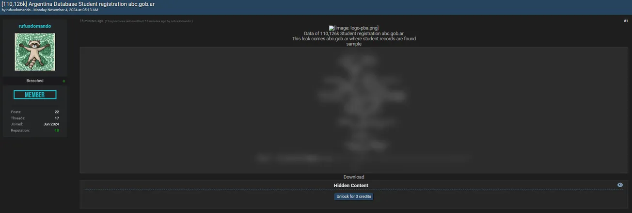 rufusdomando Allegedly Has Leaked the Data of Dirección General de Cultura y Educación PBA