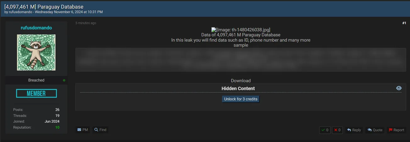 🚨 Title: Alleged leak of 4M personal data from Paraguay
