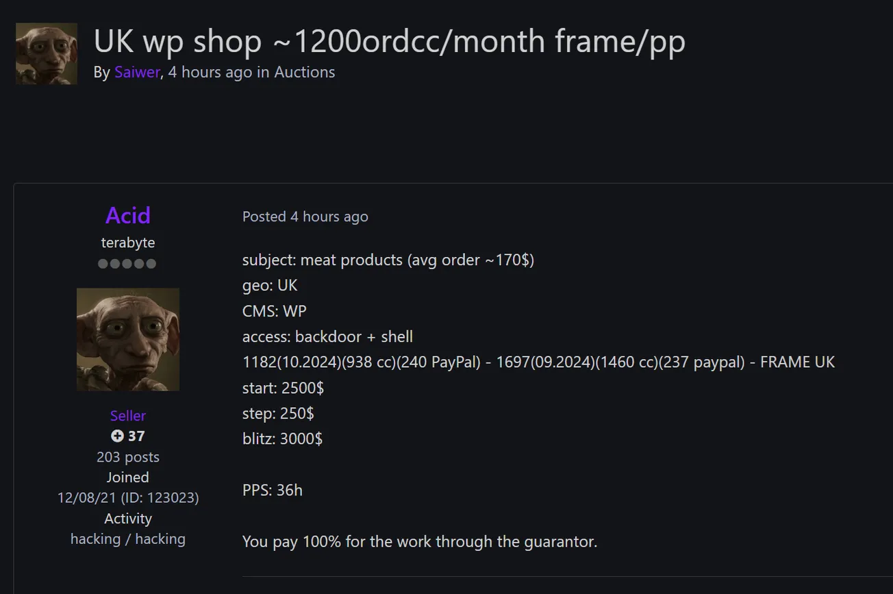 🚨 Title: Alleged WordPress access sale of unidentified shop in Sweden