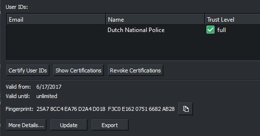 The LEA signed PGP message is authentic and signed by the Dutch National Police