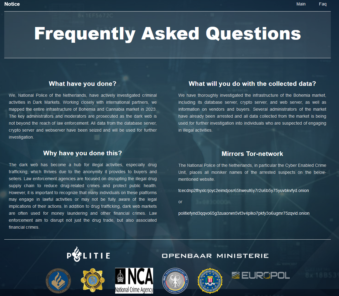 News: https://www.politie[.]nl/nieuws/2024/oktober/8/11-internationale-actie-tegen-werelds-grootste-darkweb-markt-bohemia-cannabia.html