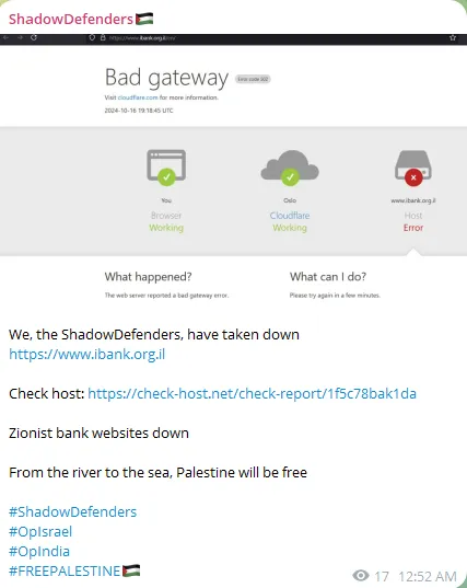 ShadowDefenders Targeted the Website of Association of Banks in Israel
