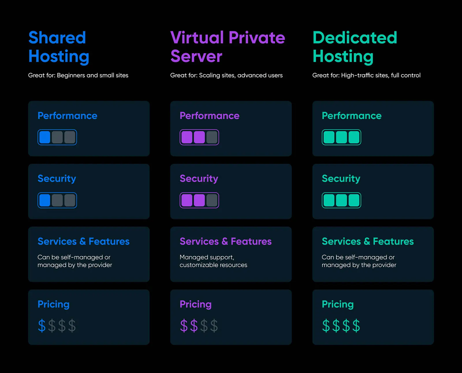 Shared Hosting vs Virtual Private Server (VPS) vs Dedicated Hosting