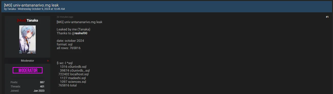 🚨 Title: Alleged data leak of University of Antananarivo