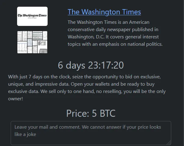 The Washington Times Has Allegedly Been Breached by Rhysida Ransomware