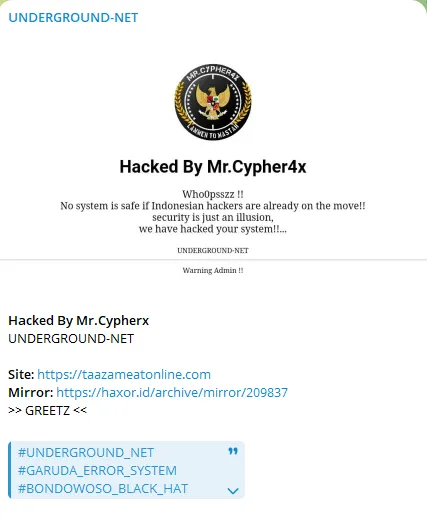 UNDERGROUND-NET Defaced the Website of Taaza Meat Online