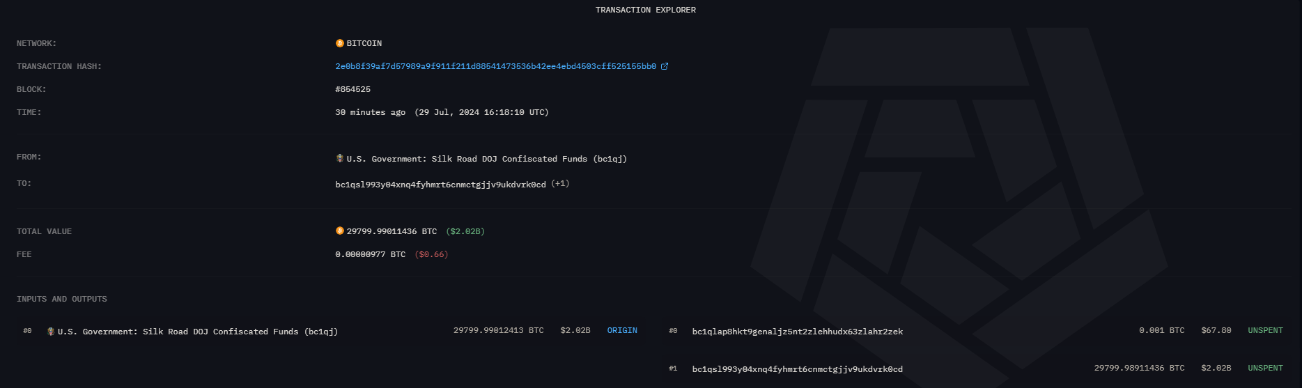 The BTC is said to be from Silk Road. This news is evolving.