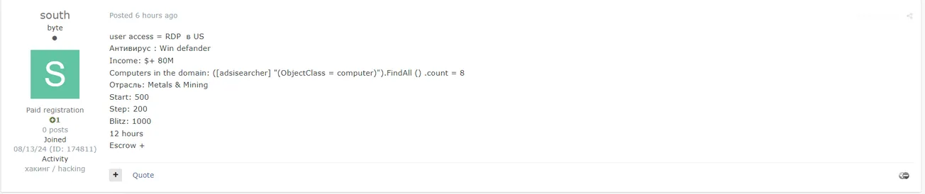 - Type: User access - RDP in the US