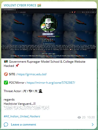VIOLENT CYBER FORCE Defaced the Website of Government Rupnagar Model School & College