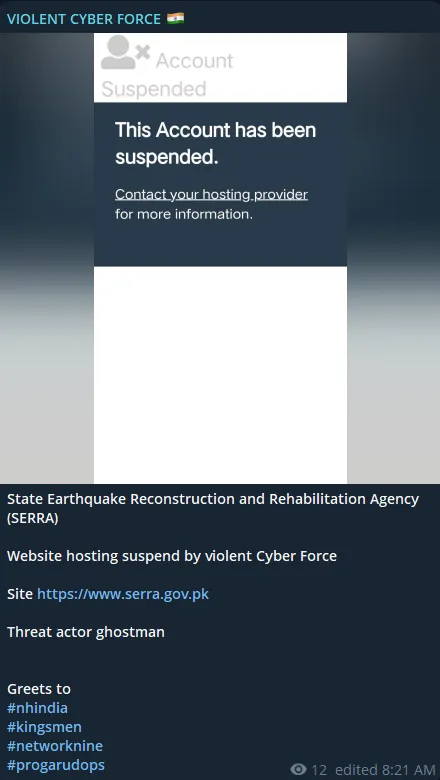 VIOLENT CYBER FORCE Targeted the Website of SERRA