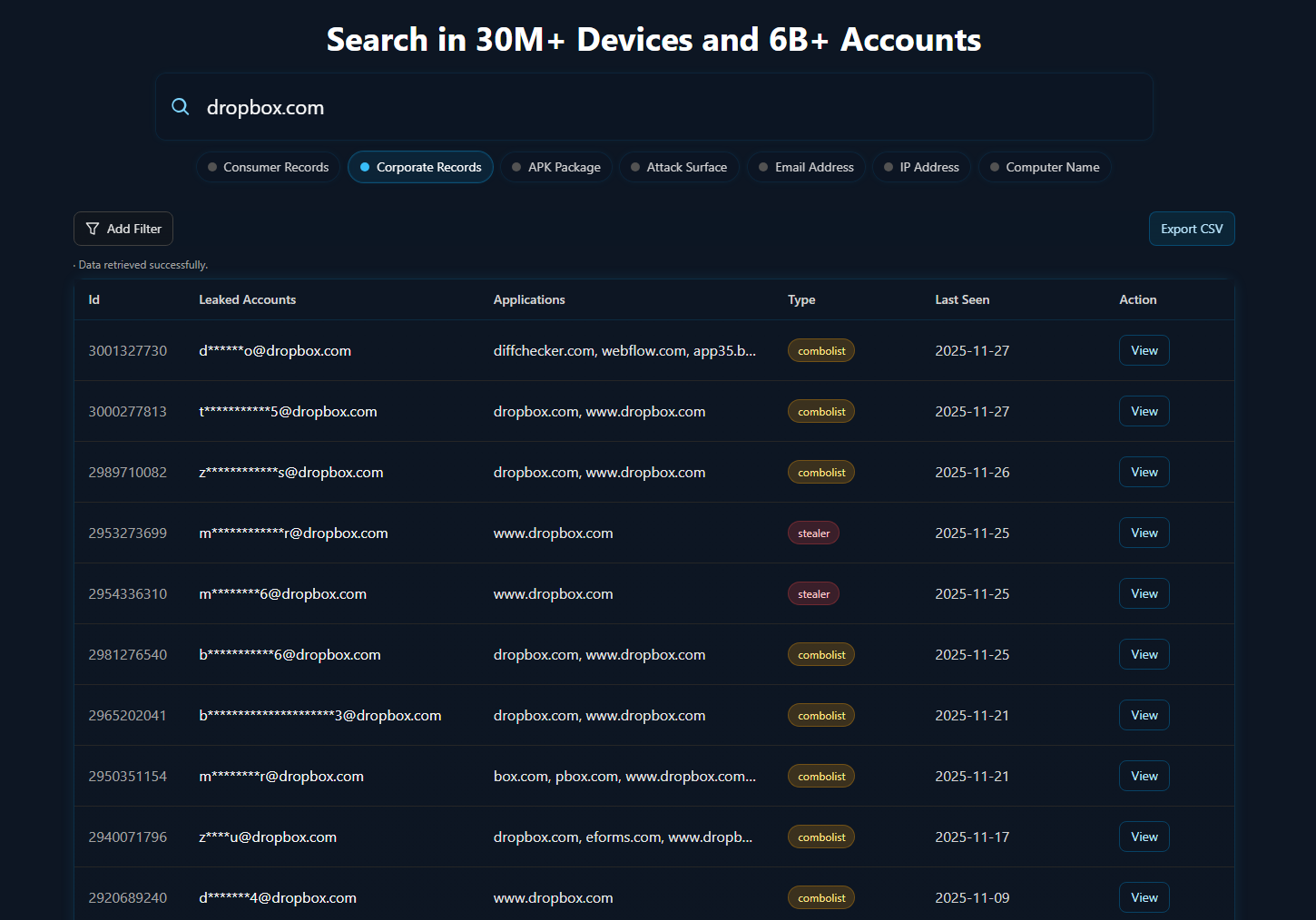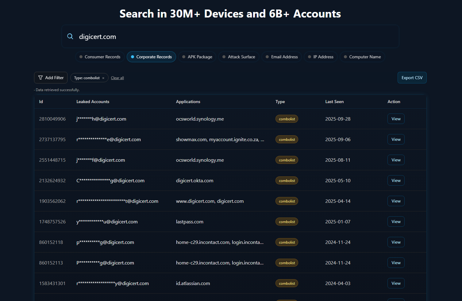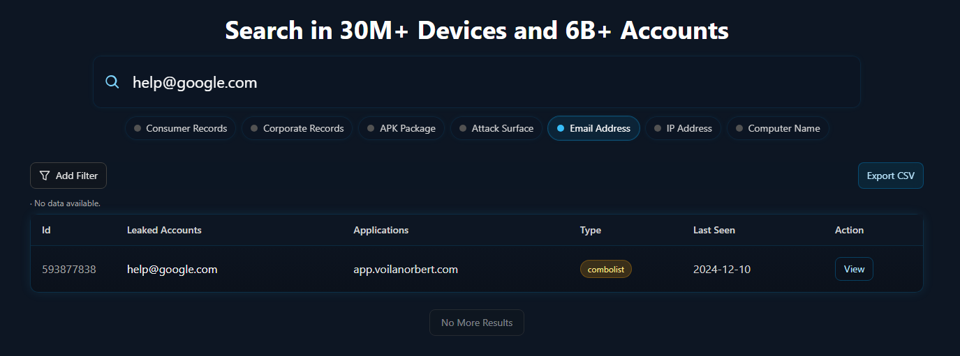 One standout feature is the combolist search. It lets you run searches across enormous datasets of compromised credentials. It handles exact matches, fuzzy matches, and altered patterns which is incredibly helpful for catching account takeover risks or detecting early credential-stuffing exposure.