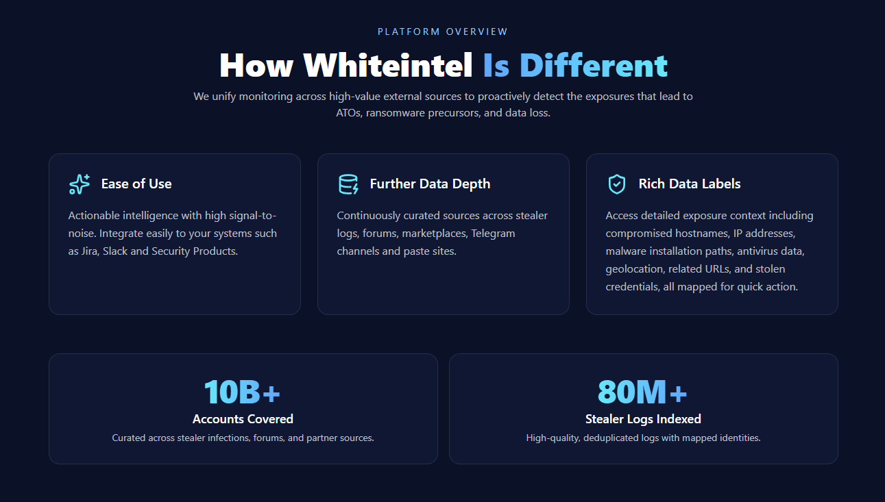 Threats today move fast and hit with little warning, and most teams feel that pressure every day. Having real-time intelligence isn’t some nice extra anymore, it’s basically the baseline for staying ahead. What sets WhiteIntel apart is that it doesn’t just push out another stream of raw data. It gives you the context behind it, the pieces that actually help you understand what’s going on so you can act sooner and with more confidence.
