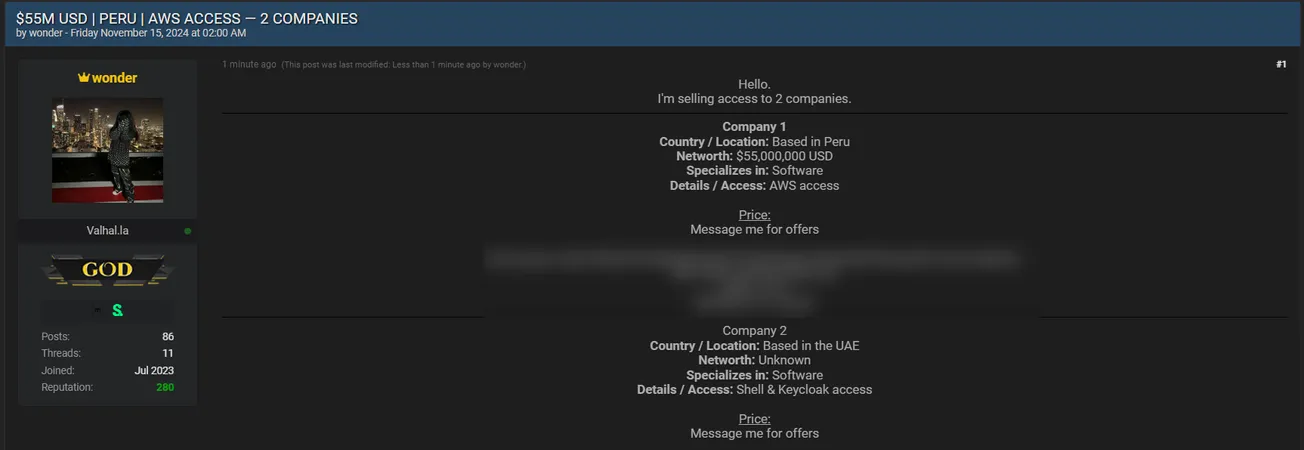 wonder is Allegedly Selling Access to an Unidentified Company in Peru and UAE