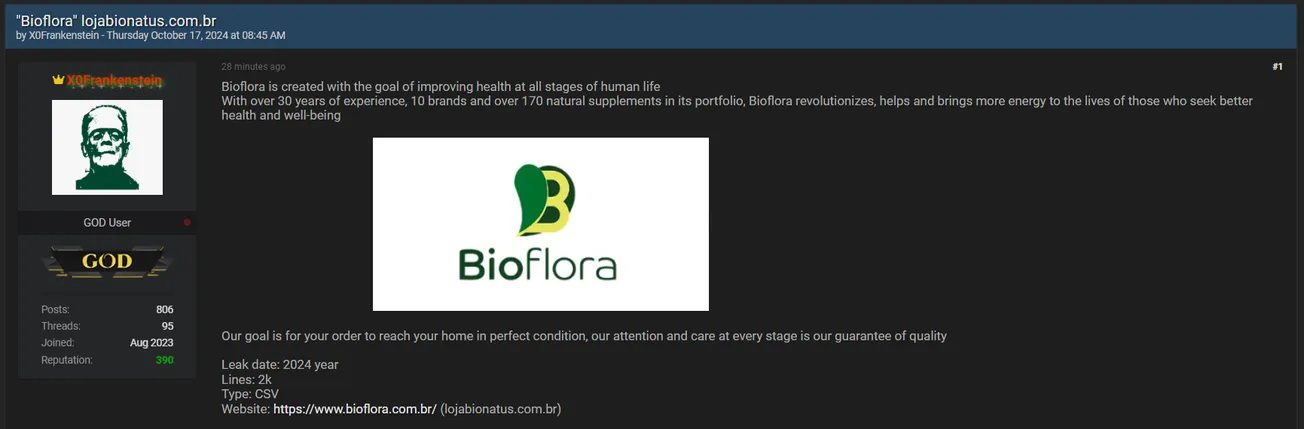 X0Frankenstein Allegedly Leaked Data of Bioflora