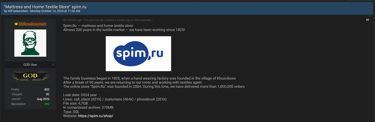 XoFrankenstein has Allegedly Leaked the Data of Spim.ru