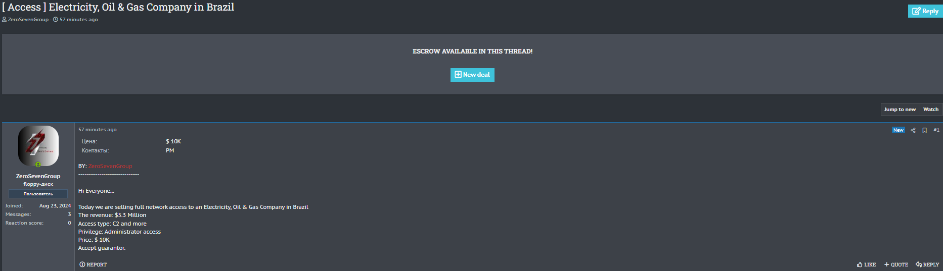 Today we are selling full network access to an Electricity, Oil & Gas Company in Brazil.