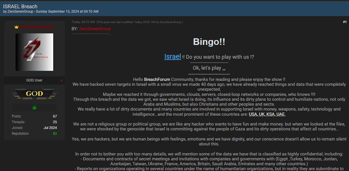 ZeroSevenGroup has Announced Seven Major Breaches in Israel