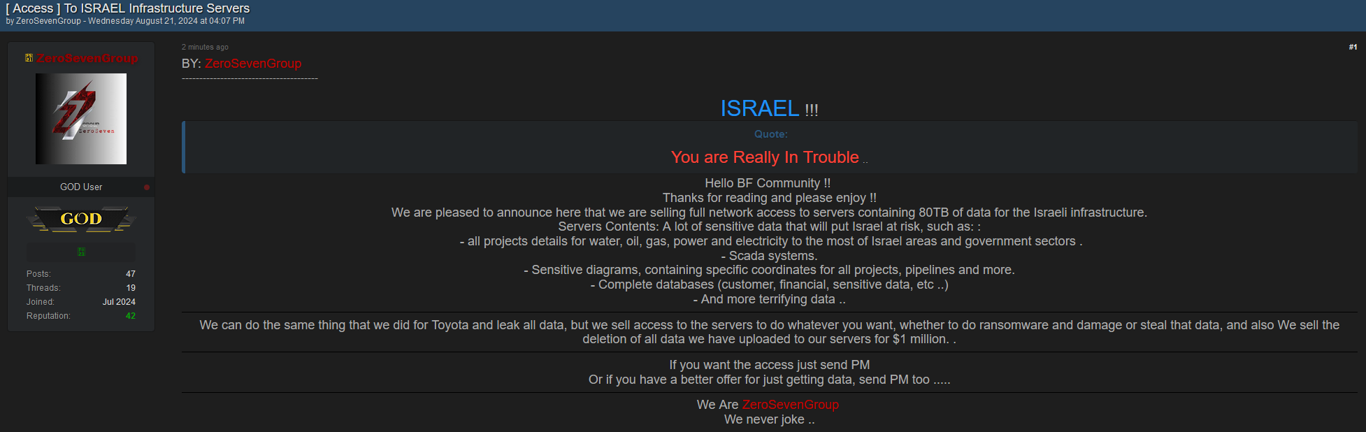 We are pleased to announce that we are selling full network access to servers containing 80TB of data for the Israeli infrastructure.