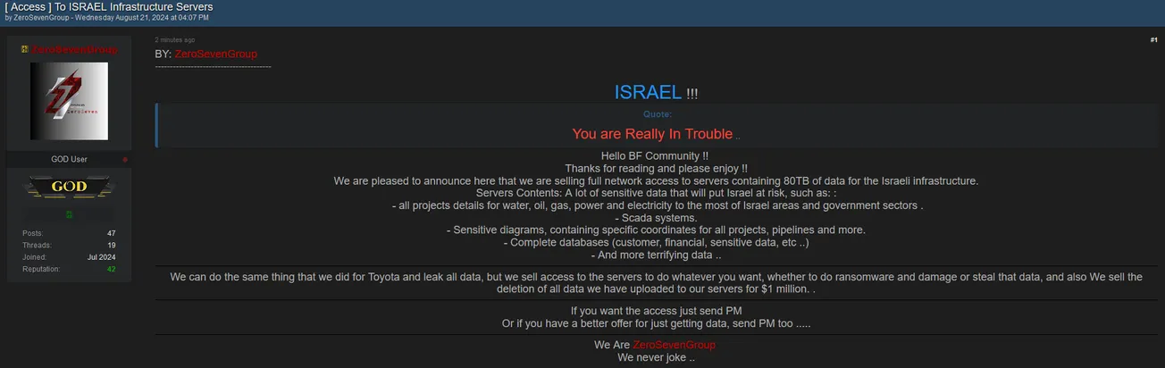 We can do the same thing we did for Toyota and leak all data, but we sell access to the servers to do whatever you want, whether to do ransomware and damage or steal that data. We also sell the deletion of all data we have uploaded to our servers for $1 million.